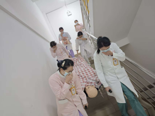 本次演练模拟了妇产科某病房因电器短路引发“火情”,现场浓烟弥漫。下午6时,随着消防警报的骤然响起,演练正式拉开帷幕。发现火情的护士立即启动应急预案,按下手动报警按钮,并第一时间向科室负责人和医院消防控制中心报告。科室消防应急小组迅速响应,分工明确:灭火行动组就近使用灭火器进行初期火灾扑救;疏散引导组立即奔赴各病房,沉着冷静地组织、协助病患及家属沿最近的安全通道有序撤离。 演练过程中,针对妇产科的独特性和高风险性,重点演练了对特殊人群的疏散方法。医护人员优先协助行动不便的产妇,使用轮椅、担架等工具,并严格按照“先重后轻、先近后远”的原则,并对新生儿室的婴儿进行了紧急转运。整个疏散过程紧张有序,全体参演人员行动迅速、配合默契,从报警、扑救、疏散到清点人数,各个环节衔接流畅。所有模拟的“患者”及医护人员均被安全疏散至指定的紧急集合点,演练取得圆满成功。